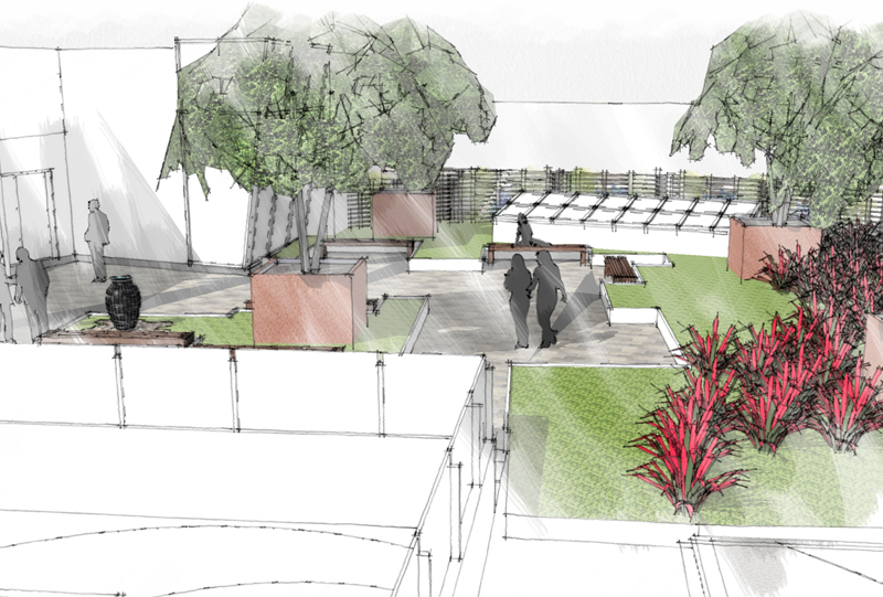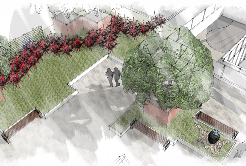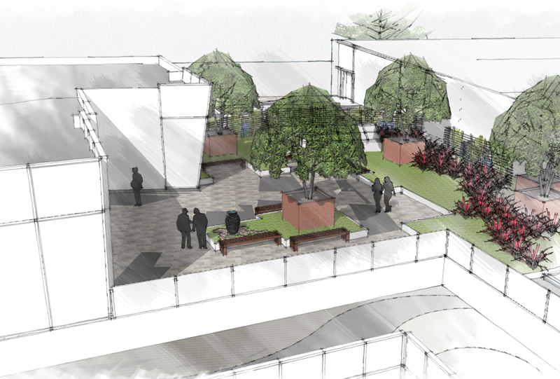 A San Diego, ce cancéropôle permet aux patients et aux visiteurs un petit espace serein et à l’abri de tout sur le toit de ce bâtiment. Des bancs, disposés à l’ombre des arbres, aident les patients à profiter d’un moment de tranquillité sous l’ambiance sonore et reposante de la fontaine. L’espace d’un temps, ils s’évadent dans un endroit paisible, loin de la maladie !